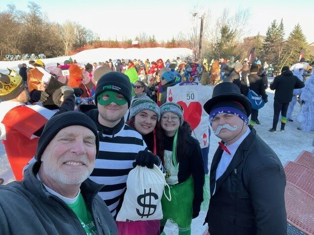This year the team will race down the Buck Hill slopes decked out as the Premier Banks Lucky Leprechauns.